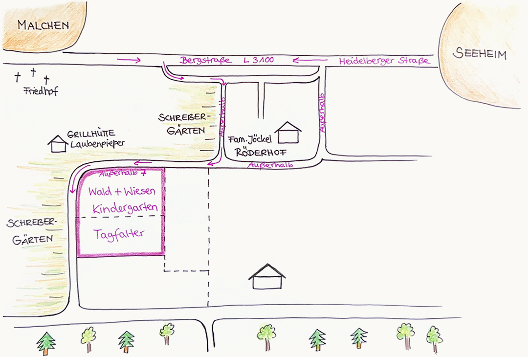 Wir treffen uns dienstags von 15:30 bis 17:00 Uhr. Es ist eine fortlaufende Gruppe, die Teilnehmerzahl ist begrenzt. Sobald wir auf der Tagfalter-Wiese ein Dach über dem Kopf haben, wird es eine Eltern-Kind-Gruppe für die ganz Kleinen geben.